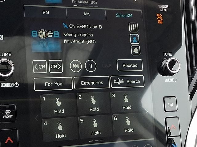 - Radio: Subaru 11.6" Multimedia Plus System -inc: AM/FM stereo, HD Radio, valet mode, multi-touch gesture high resolution display screen, voice activated controls, Bluetooth® audio streaming and hands-free phone connectivity w/SMS text messaging (refer to subaru.com for cell phone compatibility), Near Field Communication (NFC), iPod control capability, SiriusXM w/360L (4 months free trial/subscription required after), SiriusXM Travel Link (3 years free trial/subscription required after), smartphone integration for Android Auto and Apple CarPlay w/full screen view and wireless connection, USB and Over The Air (OTA) audio system update, audio system and Bluetooth® steering wheel control switches, 6 speakers, illuminated 3.5mm auxiliary input jack and illuminated USB-A and USB-C input/charge ports
