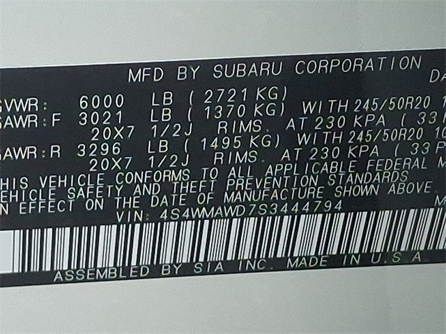 - Wheels: 20" x 7.5 J Aluminum Alloy w/Black Finish -inc: black wheel center cap w/Subaru 6 star logo
