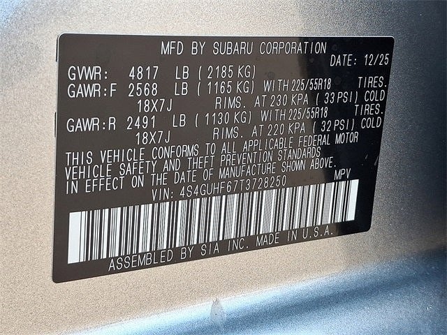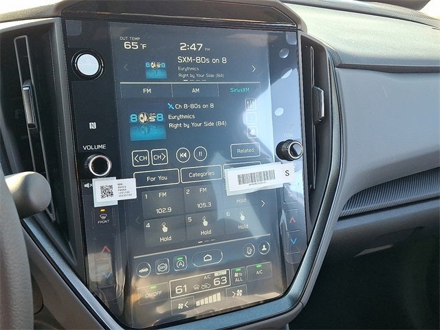 - Radio: Subaru 11.6" Multimedia Plus System -inc: AM/FM stereo, HD Radio, multi-touch gesture high resolution display screen, voice activated controls, Bluetooth® audio streaming and hands-free phone connectivity, Bluetooth® hands-free SMS text messaging connectivity, iPod control capability, smartphone integration: wired and wireless Android Auto w/full screen view and wireless Apple CarPlay w/full screen view, USB and Over The Air (OTA) audio system update, steering wheel audio system and Bluetooth® control switches, 6 speakers (2 dash panel tweeter, 2 front door and 2 rear door), illuminated 3.5mm auxiliary input jack, illuminated front USB A and C input/charge ports, connected services operation indicator, SOS emergency assistance: red SOS button and enhanced roadside assistance: blue i-button