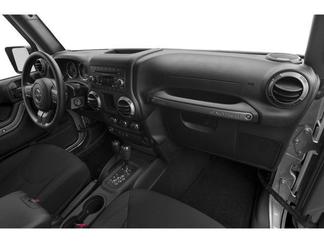 THIS VEHICLE INCLUDES THE FOLLOWING FEATURES AND OPTIONS: Connectivity Group (Remote USB Port, Tire Pressure Monitoring Display, Uconnect Voice Command w/Bluetooth®, and Vehicle Information Center), Freedom Edition Package, Freedom Package Decals, LED Lighting Group (LED Fog Lamps and LED Reflector Headlamps), Power Convenience Group (Auto-Dimming Mirror w/Reading Lamp, Front 1-Touch Down Power Windows, Power Heated Mirrors, Power Locks, Remote Keyless Entry, and Security Alarm), Quick Order Package 23F Freedom (DISC) (1-Yr SiriusXM Radio Service, 115V Auxiliary Power Outlet, Air Conditioning, Black/Chrome Screws Fuel Filler Door, Body Color Fender Flares, Bridgestone Brand Tires, Dana 44/226MM Rear Axle, Deep Tint Sunscreen Windows, Driver Height Adjuster Seat, Granite Crystal Jeep Badge, Heavy Duty Suspension w/Gas Shocks (DISC), Iron Gray Interior Accents, Leather Seat w/Cloth (Sedoso Fabric) (DISC), Mid Gloss Granite Crystal Appliques, Mid Gloss Granite Crystal Grille, MOPAR Black Tail Lamp Guards, MOPAR Coat Hooks & Grab Handles, MOPAR Slush Mats, Oscar Mike Badge, Pantone Trail Rated Badge, Premium Black Sunrider Soft Top, Silver Interior Accents, SIRIUS Satellite Radio, Sunrider Soft Top, Tubular Side Steps, and Wheels: 18 x 7.5 Alum Granite Crystal (DISC)), Quick Order Package 24F Freedom (DISC), 16 x 7.0 Luxury Styled Steel Wheels, 3.21 Rear Axle Ratio, 4-Wheel Disc Brakes, 40GB Hard Drive w/28GB Available, 5-Year SiriusXM Travel Link Service, 6.5 Touchscreen Display, 8 Speakers, ABS brakes, AM/FM radio, Audio Jack Input for Mobile Devices, Brake assist, CD player, Cloth Seats w/Adjustable Head Restraints, Compass, Driver door bin, Driver vanity mirror, Dual front impact airbags, Electronic Stability Control, Front anti-roll bar, Front Bucket Seats, Front Center Armrest w/Storage, Front fog lights, GPS Navigation, Integrated roll-over protection, Low tire pressure warning, Normal Duty Suspension, Occupant sensing airbag, Outside temperature display, Passenger door bin, Passenger vanity mirror, Power steering, Radio: 130, Radio: 430 Nav (DISC), Rear anti-roll bar, SIRIUSXM Travel Link, Speed control, Steering wheel mounted audio controls, Tachometer, Tilt steering wheel, Traction control, Trip computer, and Variably intermittent wipers.