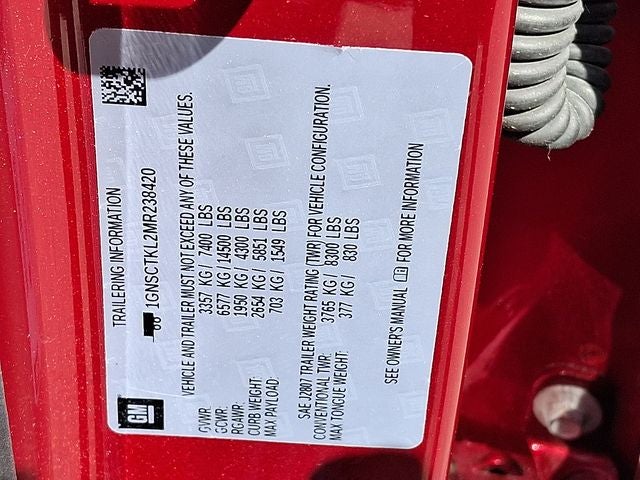 This Vehicle Includes the Following Options: Advanced Trailering Package (Advanced Trailering System, Hitch Guidance w/Hitch View, Integrated Trailer Brake Controller, and Trailer Side Blind Zone Alert), High Country Deluxe (Adaptive Cruise Control, Air Ride Adaptive Suspension, Dual-Pane Power Panoramic Sunroof, Enhanced Automatic Emergency Braking, and Power-Retractable Assist Steps), License Plate Front Mounting Package, Max Trailering Package (Extra Capacity Cooling System), Preferred Equipment Group 3LZ (15 Diagonal Multi-Color Head-Up Display, 1st & 2nd Row Color-Keyed Carpeted Floor Mats, 2 USB Data Ports, 3rd Row 60/40 Power-Folding Split-Bench Seat, Automatic Heated Steering Wheel, Bright Front & Rear Door Sill Plates, Chrome Door Handles w/Body-Color Strip, Color-Keyed Carpeting Floor Covering, Driver & Front Outboard Passenger Airbags, Dual Exhaust System, Enhanced Driver Information Center, Floor Console w/Storage Area, Front & Rear Park Assist, Hands-Free Rear Power Programmable Liftgate, HD Radio, HD Surround Vision, Heated 2nd Row Outboard Seats, Infotainment Display, Inside Rearview Auto-Dimming Rear Camera Mirror, Lane Change Alert w/Side Blind Zone Alert, Lane Keep Assist w/Lane Departure Warning, Leather-Wrapped Steering Wheel, LED Daytime Running Lamps, Memory Settings, Outside Heated Power-Adjustable Mirrors, Power Release 2nd Row Bucket Seats, Power Tilt & Telescopic Steering Column, Rear Camera Mirror Washer, Rear Cross Traffic Alert, Rear Pedestrian Alert, Remote Start, Safety Alert Seat, SiriusXM NavTraffic, SiriusXM Radio w/360L, and Universal Home Remote), Jet Black/Mocha Leather, 10 Speakers, 12-Way Power Driver & Passenger Seat Adjusters, 3.23 Rear Axle Ratio, 3rd row seats: split-bench, 4-Wheel Disc Brakes, ABS brakes, Adaptive suspension, Air Conditioning, Alloy wheels, AM/FM radio: SiriusXM with 360L, Apple CarPlay/Android Auto, Auto High-beam Headlights, Auto-dimming door mirrors, Auto-dimming Rear-View mirror, Auto-leveling suspension, Automatic temperature control, Black Name Plates (LPO), Bose 10-Speaker Centerpoint Surround Audio Sys Ft, Brake assist, Bumpers: body-color, Compass, Delay-off headlights, Driver door bin, Driver vanity mirror, Dual front impact airbags, Dual front side impact airbags, Electronic Stability Control, Emergency communication system: OnStar and Chevrolet connected services capable, Floor Console, Four wheel independent suspension, Front anti-roll bar, Front Bucket Seats, Front Center Armrest, Front dual zone A/C, Front High-Back Reclining Bucket Seats, Front reading lights, Fully automatic headlights, Garage door transmitter, Heads-Up Display, Heated & Ventilated Driver & Front Passenger Seats, Heated door mirrors, Heated Driver & Front Passenger Seats, Heated front seats, Heated rear seats, Heated steering wheel, Illuminated entry, Leather steering wheel, Low tire pressure warning, Magnetic Ride Control Suspension, Memory seat, Navigation System, Occupant sensing airbag, Outside temperature display, Overhead airbag, Overhead console, Panic alarm, Passenger door bin, Passenger vanity mirror, Perforated Leather Seat Trim, Power door mirrors, Power driver seat, Power Liftgate, Power passenger seat, Power steering, Power windows, Premium audio system: Chevrolet Infotainment 3, Radio: Chevrolet Infotainment 3 Premium System, Rain sensing wipers, Rear air conditioning, Rear anti-roll bar, Rear reading lights, Rear window defroster, Rear window wiper, Remote keyless entry, Roof rack: rails only, Security system, Set of 4 Wheel Locks (LPO), Speed control, Speed-sensing steering, Split folding rear seat, Spoiler, Steering wheel memory, Steering wheel mounted audio controls, Tachometer, Telescoping steering wheel, Tilt steering wheel, Traction control, Trip computer, Turn signal indicator mirrors, Variably intermittent wipers, Ventilated front seats, Voltmeter, and Wheels: 22 x 9 Sterling Silver Premium Paint