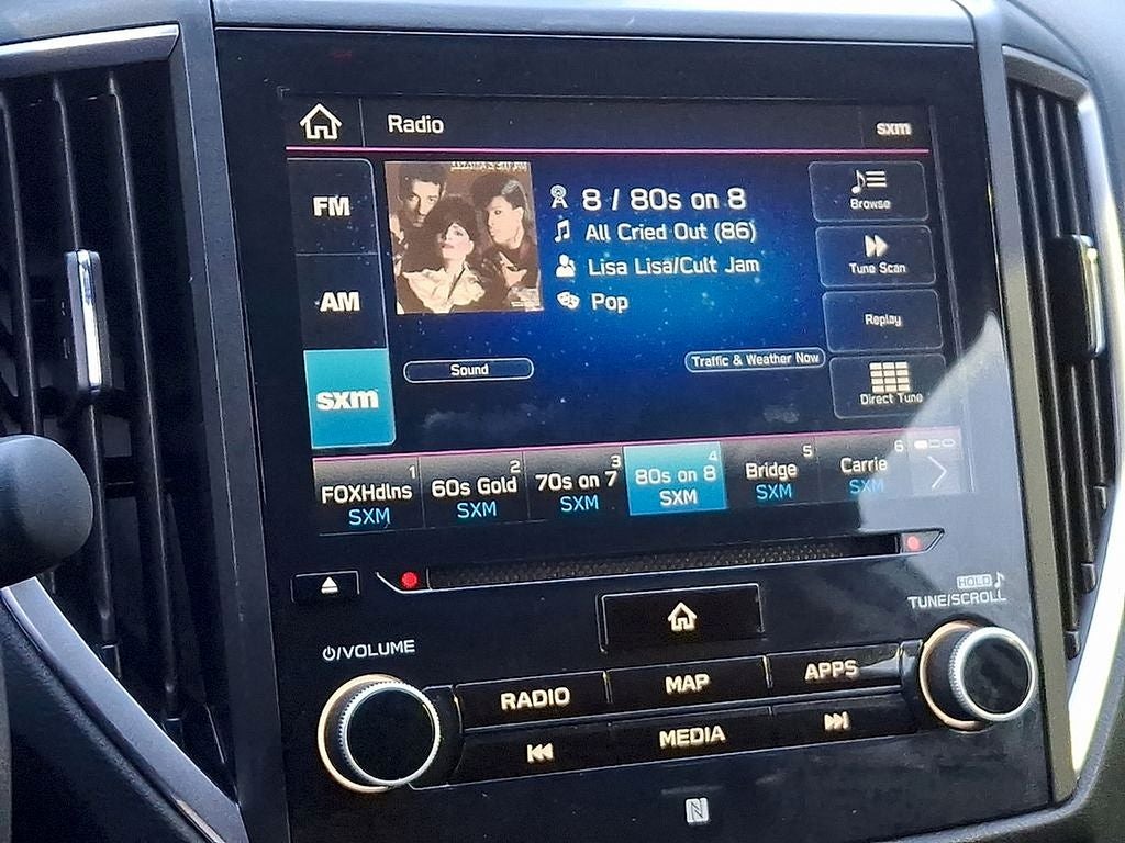 - Radio: Subaru Starlink 8.0" Multimedia Nav System -inc: AM/FM stereo HD Radio w/single-disc CD player w/MP3/WMA/CRR/RW file capability, multi-touch gesture high resolution display, voice activated controls, voice activated navigation, Bluetooth® audio streaming connectivity and hands-free phone connectivity, Bluetooth® hands-free SMS text messaging connectivity, Near Field Communication (NFC), iPod control capability, rear-vision camera display, SiriusXM All Access radio (4 months free trial/subscription required after), SiriusXM Traffic and Travel Link (3 years free trial/subscription required after), smartphone integration: AHA, Android Auto, CarPlay and Pandora, Starlink cloud applications: refer to subaru.com for app availability, steering wheel controls, 9 harmon/kardon speaker system, 3.5mm auxiliary input jack, dual USB input ports and body color roof mounted antenna