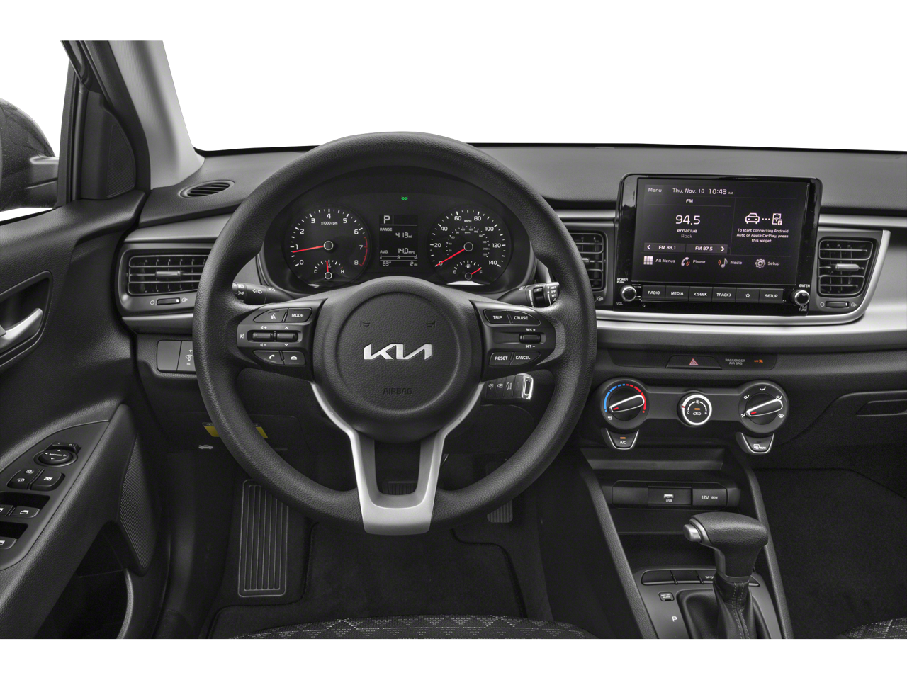 This Vehicle Includes the Following Options: Technology Package (15 x 5.5J Alloy Wheels, Automatic Temperature Control, Chrome Door Handles, Forward Collision Avoidance Assist, Highline Tire Pressure Monitoring System (TPMS), Kia Connect eServices, LED Headlights, LED Positioning Lights, Push Button Start w/Immobilizer, Rear Disc Brakes, Rear Occupant Alert, SiriusXM Satellite Radio, and Supervision Meter Cluster), Black Cloth, 6 Speakers, ABS brakes, Air Conditioning, AM/FM radio, Brake assist, Bumpers: body-color, Driver door bin, Driver vanity mirror, Dual front impact airbags, Dual front side impact airbags, Electronic Stability Control, Front anti-roll bar, Front Bucket Seats, Front Center Armrest, Front reading lights, Front wheel independent suspension, Fully automatic headlights, Heated door mirrors, Illuminated entry, Low tire pressure warning, Occupant sensing airbag, Outside temperature display, Overhead airbag, Overhead console, Panic alarm, Passenger door bin, Passenger vanity mirror, Power door mirrors, Power steering, Power windows, Radio: AM/FM/MP3 Audio System, Rear window defroster, Remote keyless entry, Speed control, Speed-sensing steering, Split folding rear seat, Steering wheel mounted audio controls, Tachometer, Tilt steering wheel, Traction control, Trip computer, Variably intermittent wipers, Wheels: 15 x 5.5J Steel w/Full Covers, and Woven & Tricot Cloth Seat Trim.