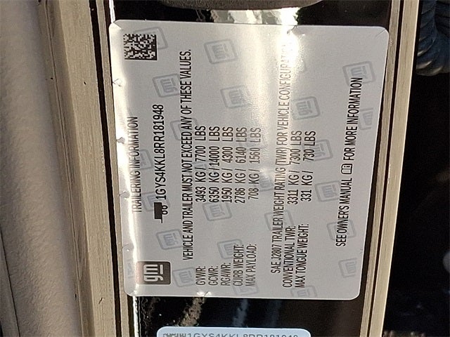 This Vehicle Includes the Following Options: Preferred Equipment Group 1SB (Adaptive Cruise Control, AKG Studio 19-Speaker Audio System, Automatic Seat Belt Tightening, Door Lock & Latch Shields, Enhanced Automatic Emergency Braking, Enhanced Automatic Parking Assist, Glass Breakage Sensor, Heated & Ventilated Driver & Front Passenger Seats, Lane Change Alert w/Side Blind Zone Alert, Mechanical Limited-Slip Differential, Power Panoramic Tilt-Sliding Sunroof, Rear Camera Mirror, Rear Camera Mirror Washer, Rear Cross Traffic Alert, Reconfigurable Full-Color Head-Up Display, Reverse Automatic Braking, Running Board Assist Steps, Theft-Deterrent Alarm System, Vehicle Inclination Sensor, and Vehicle Interior Movement Sensor), AWD, 16.9 Diagonal OLED Infotainment Screen, 19 Speakers, 2-Presets Memory For Driver Seat Adjuster, 3.23 Axle Ratio, 3rd row seats: split-bench, 4-Way Power Driver Lumbar Seat Adjuster, 4-Way Power Front Passenger Lumbar Seat Adjuster, 4-Wheel Disc Brakes, 8-Way Power Driver Seat Adjuster, 8-Way Power Front Passenger Seat Adjuster, ABS brakes, Air Conditioning, Alloy wheels, AM/FM radio: SiriusXM with 360L, Apple CarPlay/Android Auto, Audio memory, Auto High-beam Headlights, Auto tilt-away steering wheel, Auto-dimming door mirrors, Automatic temperature control, Brake assist, Bumpers: body-color, Compass, Delay-off headlights, Driver door bin, Driver vanity mirror, Dual front impact airbags, Dual front side impact airbags, Electronic Stability Control, Emergency communication system: OnStar and Cadillac connected services capable, Exterior Parking Camera Rear, Four wheel independent suspension, Front anti-roll bar, Front Bucket Seats, Front Center Armrest w/Storage, Front dual zone A/C, Front reading lights, Fully automatic headlights, Garage door transmitter, HD Radio, Heads-Up Display, Heated door mirrors, Heated Driver & Front Passenger Seats, Heated front seats, Heated rear seats, Heated steering wheel, Illuminated entry, Leather Seating Surfaces w/Mini-Chevron Perf Inserts, Low tire pressure warning, Memory seat, Navigation System, Occupant sensing airbag, Outside temperature display, Overhead airbag, Overhead console, Panic alarm, Passenger door bin, Passenger vanity mirror, Power door mirrors, Power driver seat, Power Liftgate, Power moonroof, Power passenger seat, Power steering, Power windows, Premium Smooth Ride Suspension, Radio data system, Radio: AM/FM w/Navigation, Rain sensing wipers, Rear air conditioning, Rear anti-roll bar, Rear reading lights, Rear window defroster, Rear window wiper, Remote keyless entry, Security system, SiriusXM w/360L, Speed control, Split folding rear seat, Spoiler, Steering wheel memory, Steering wheel mounted audio controls, Tachometer, Teen Driver, Telescoping steering wheel, Tilt steering wheel, Traction control, Trip computer, Turn signal indicator mirrors, Variably intermittent wipers, Ventilated front seats, Voltmeter, Wheel Locks, Wheels: 22 14-Spoke Alloy w/Polished Finish, and Wireless Apple CarPlay/Wireless Android Auto.