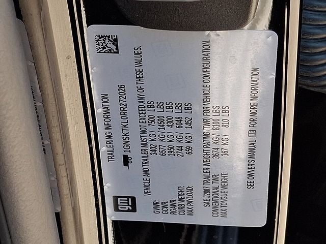 This Vehicle Includes the Following Options: Advanced Trailering Package (Hitch View w/Pan/Zoom Image Adjustment, Integrated Trailer Brake Controller, Smart Trailer Integration Indicator, and Trailer Side Blind Zone Alert), High Country Deluxe (Air Ride Adaptive Suspension, Dual-Pane Power Panoramic Sunroof, and Power-Retractable Assist Steps), License Plate Front Mounting Package, Max Trailering Package (Extra Capacity Cooling System), Preferred Equipment Group 3LZ (15 Diagonal Multi-Color Head-Up Display, 1st & 2nd Row Color-Keyed Carpeted Floor Mats, 2-Speed Active Electronic AutoTrac Transfer Case, 3rd Row 60/40 Power-Folding Split-Bench Seat, Adaptive Cruise Control, Bose 10-Speaker Centerpoint Surround Audio Sys Ft, Bright Front & Rear Door Sill Plates, Chrome Door Handles w/Body-Color Strip, Color-Keyed Carpeting Floor Covering, Driver & Front Outboard Passenger Airbags, Dual Exhaust System, Enhanced Automatic Emergency Braking, Enhanced Driver Information Center, Floor Console, Hands-Free Rear Power Programmable Liftgate, HD Surround Vision, Heated 2nd Row Outboard Seats, Heated Steering Wheel, Hill Descent Control, Inside Rearview Auto-Dimming Rear Camera Mirror, Lane Change Alert w/Side Blind Zone Alert, LED Daytime Running Lamps, Memory Settings, Outside Heated Power-Adjustable Mirrors, Power Release 2nd Row Bucket Seats, Power Tilt & Telescopic Steering Column, Rear Camera Mirror Washer, Rear Cross Traffic Alert, Rear Pedestrian Alert, Remote Start, Safety Alert Seat, SiriusXM w/360L, Universal Home Remote, Wireless Charging, and Wrapped Steering Wheel), Chevrolet Certified Pre-Owned Certified, 4WD, Black Leather, 10 Speakers, 12-Way Power Driver & Passenger Seat Adjusters, 3.23 Rear Axle Ratio, 3rd row seats: split-bench, 4-Wheel Disc Brakes, ABS brakes, Adaptive suspension, Air Conditioning, Alloy wheels, AM/FM radio: SiriusXM with 360L, Apple CarPlay/Android Auto, Auto High-beam Headlights, Auto-dimming door mirrors, Auto-dimming Rear-View mirror, Auto-leveling suspension, Automatic temperature control, Brake assist, Bumpers: body-color, Compass, Delay-off headlights, Driver & Front Passenger Heated & Ventilated Seats, Driver door bin, Driver vanity mirror, Dual front impact airbags, Dual front side impact airbags, Electronic Stability Control, Emergency communication system: OnStar and Chevrolet connected services capable, Exterior Parking Camera Rear, Four wheel independent suspension, Front anti-roll bar, Front Bucket Seats, Front Center Armrest, Front dual zone A/C, Front High-Back Reclining Bucket Seats, Front reading lights, Fully automatic headlights, Garage door transmitter, Heads-Up Display, Heated door mirrors, Heated Driver & Front Passenger Seats, Heated front seats, Heated rear seats, Heated steering wheel, Illuminated entry, Infotainment Display, Low tire pressure warning, Magnetic Ride Control Suspension, Memory seat, Navigation System, Occupant sensing airbag, Outside temperature display, Overhead airbag, Overhead console, Panic alarm, Passenger door bin, Passenger vanity mirror, Perforated Leather Seat Trim, Power door mirrors, Power driver seat, Power Liftgate, Power passenger seat, Power steering, Power windows, Premium audio system: Chevrolet Infotainment 3 Premium, Radio: Chevrolet Infotainment 3 Premium System, Rain sensing wipers, Rear air conditioning, Rear anti-roll bar, Rear reading lights, Rear window defroster, Rear window wiper, Remote keyless entry, Roof rack: xxxxxx, Security system, Set of 4 Wheel Locks (LPO), Speed control, Speed-sensing steering, Split folding rear seat, Spoiler, Steering wheel memory, Steering wheel mounted audio controls, Tachometer, Telescoping steering wheel, Tilt steering wheel, Traction control, Trip computer, Turn signal indicator mirrors, Variably intermittent wipers, Ventilated front seats, Voltmeter, and Wheels: 22 x 9 Sterling Silver Premium Painted.