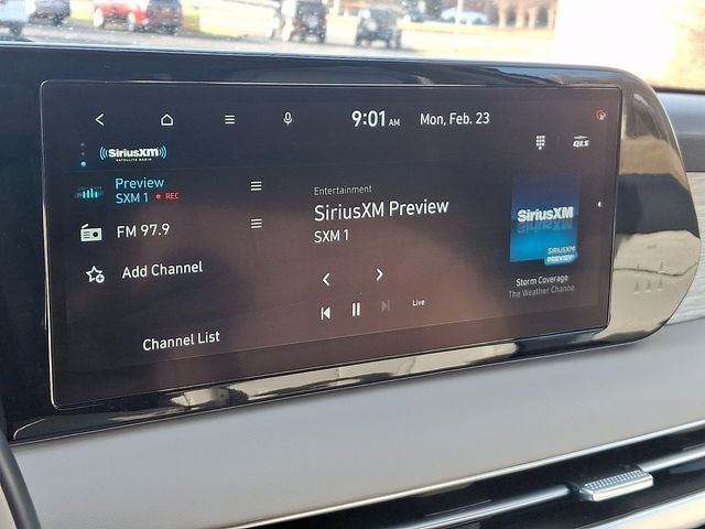 - Radio: AM/FM/MP3 Premium Audio System -inc: 630-Watts, Harman Kardon audio system w/12-speakers, Quantum Logic Surround, Clari-Fi, 12.3" color touchscreen display, onboard navigation w/traffic flow including incident data via HD Radio (HERE), Over-the-Air (OTA) map updates, SiriusXM, Android Auto and Apple CarPlay, USB, dynamic voice recognition, rear seat quiet mode, passenger talk (in-car intercom), Bluetooth® hands-free connectivity w/multiple device connection and Bluelink Connected Car System