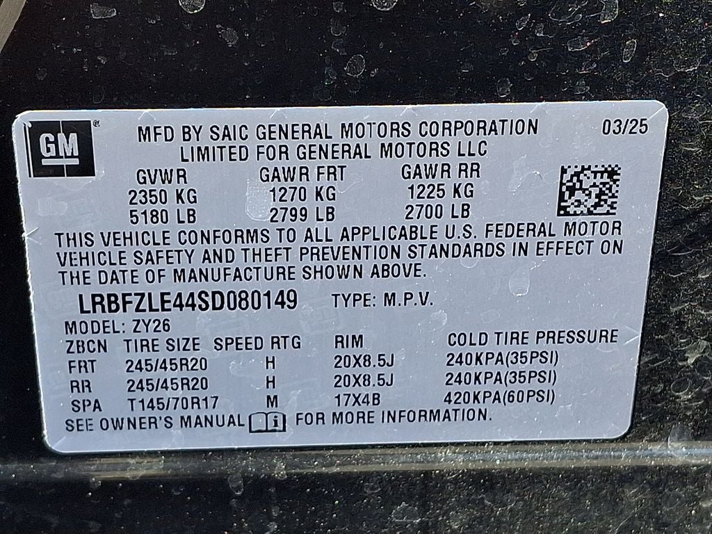 - Tires, P245/45R20 all-season