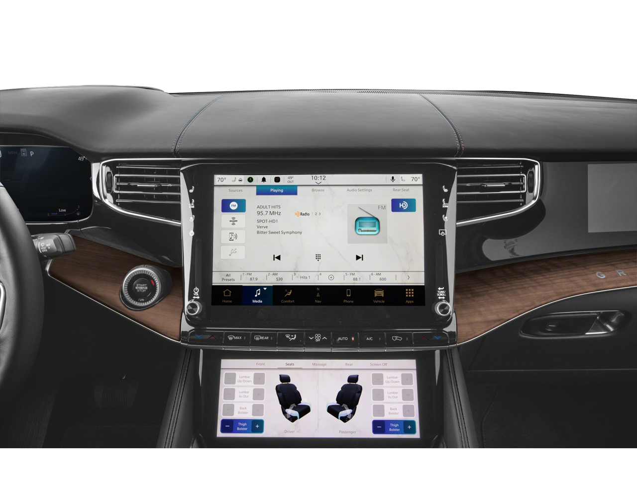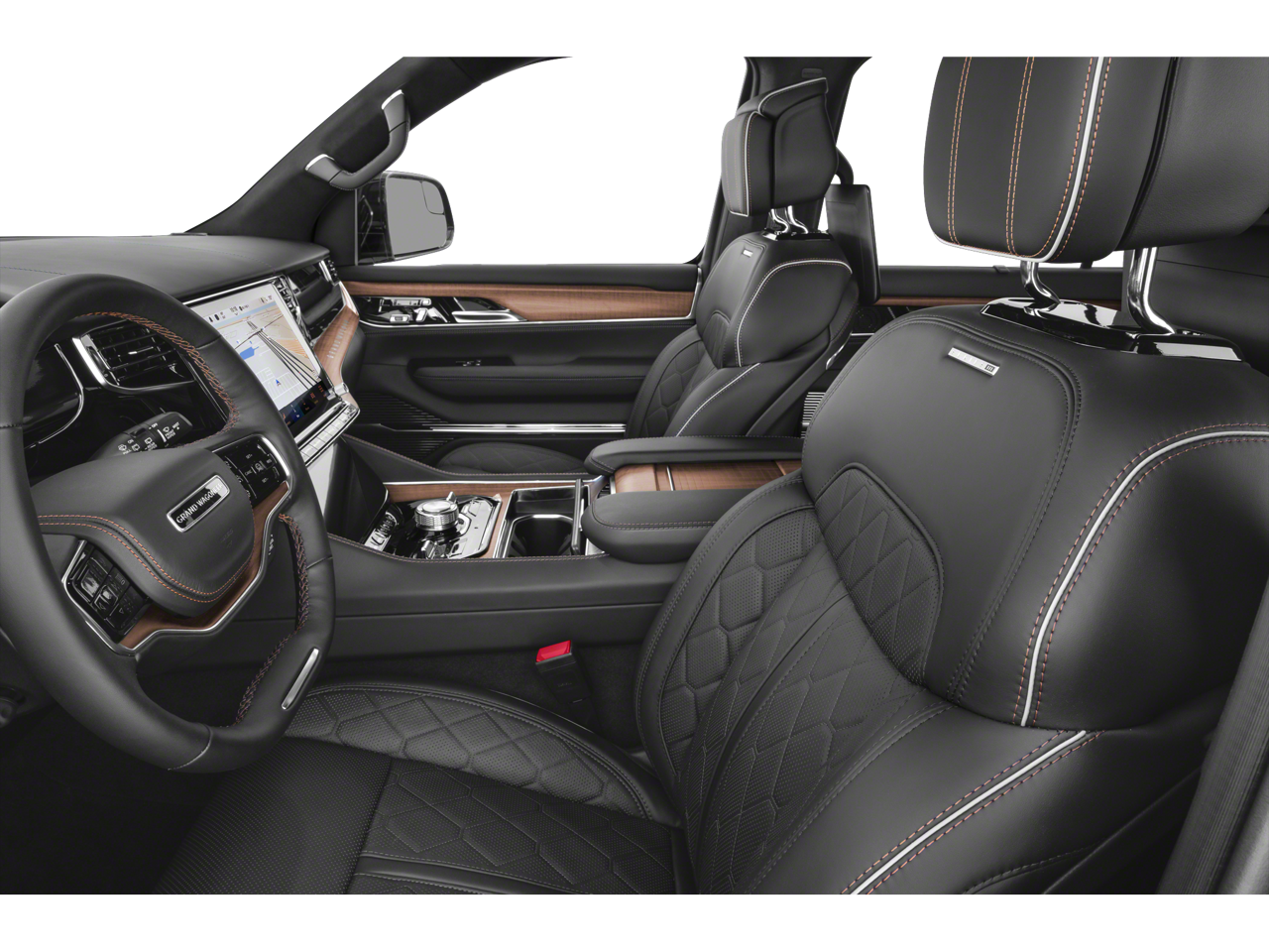 THIS VEHICLE INCLUDES THE FOLLOWING FEATURES AND OPTIONS: 8-Passenger Seating Package (2nd Row Dual Charge-Only USB Ports, 40/20/40 2nd Row Bench Power Tip/Slide, and 8-Passenger Seating), Convenience Group III (Advanced Security Alert System, Interior Rear Facing Camera, and Night Vision/Pedestrian-Animal Detection), MOPAR Interior Protection Package (All-Season Floor Mats and Cargo Tray), Quick Order Package 28T Obsidian, Rear Seat Video Group 1 (Amazon Fire TV Built-In, Seatback Video Screens, and Video USB Port), Two Tone Paint Group, 3.92 Rear Axle Ratio, 3rd row seats: bench, 4-Wheel Disc Brakes, ABS brakes, Adjustable pedals, Air Conditioning, Alloy wheels, AM/FM radio: SiriusXM with 360L, Anti-whiplash front head restraints, Apple CarPlay/Android Auto, Audio memory, Auto High-beam Headlights, Auto-dimming door mirrors, Auto-dimming Rear-View mirror, Auto-leveling suspension, Automatic temperature control, Body Color Roof, Brake assist, Bumpers: body-color, Compass, Delay-off headlights, Driver door bin, Driver vanity mirror, Driver's Seat Mounted Armrest, Dual front impact airbags, Dual front side impact airbags, Electronic Stability Control, Emergency communication system: Jeep Connect, Four wheel independent suspension, Front anti-roll bar, Front Bucket Seats, Front Center Armrest w/Storage, Front dual zone A/C, Front fog lights, Front reading lights, Fully automatic headlights, Garage door transmitter, Heads-Up Display, Heated door mirrors, Heated front seats, Heated rear seats, Heated steering wheel, Illuminated entry, Knee airbag, Leather steering wheel, Leather Trimmed Bucket Seats, Low tire pressure warning, Memory seat, Navigation System, Normal Duty Suspension, Occupant sensing airbag, Outside temperature display, Overhead airbag, Overhead console, Panic alarm, Passenger door bin, Passenger seat mounted armrest, Passenger vanity mirror, Pedal memory, Power adjustable front head restraints, Power door mirrors, Power driver seat, Power Liftgate, Power moonroof, Power passenger seat, Power steering, Power windows, Radio data system, Radio: Uconnect 5 Nav w/12.0 Display, Rain sensing wipers, Rear air conditioning, Rear anti-roll bar, Rear dual zone A/C, Rear reading lights, Rear seat center armrest, Rear window defroster, Rear window wiper, Reclining 3rd row seat, Remote keyless entry, Roof rack, Security system, Speed control, Speed-sensing steering, Speed-Sensitive Wipers, Split folding rear seat, Steering wheel memory, Steering wheel mounted audio controls, Tachometer, Telescoping steering wheel, Tilt steering wheel, Traction control, Trip computer, Turn signal indicator mirrors, Variably intermittent wipers, Ventilated front seats, Ventilated rear seats, Voltmeter, and Wheels: 22 x 9.0 Polished Painted Pockets.
